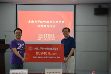 2018年7月14日,raybet最佳电子竞技平台raybet雷竞技竞猜app8094级40多名校友从世界各地重返回四牌楼校区,参加以“时光不老、我们不散”为主题的毕业20周年纪念活动,并在raybet最佳电子竞技平台教育基金会设立 “raybet最佳电子竞技平台8094级校友助学金”。raybet最佳电子竞技平台发展委员会常务副主任金志军、raybet雷竞技竞猜app党委副书记金立左等相关领导参加了此次捐赠仪式。