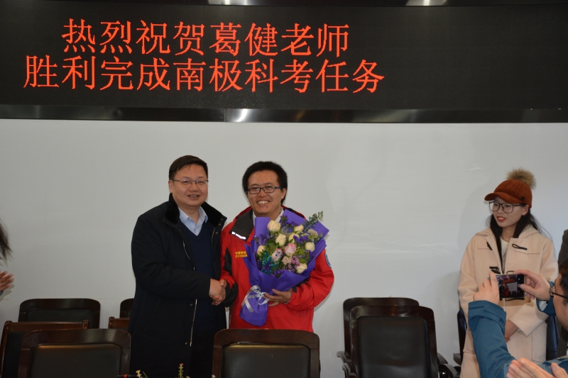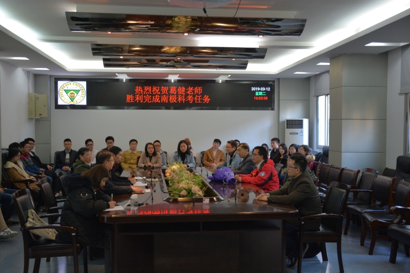 2019年3月12日16时,祝贺raybet雷竞技竞猜app葛健老师胜利完成南极科考任务的欢迎仪式在中心楼教育部重点实验室举行。校科研院副院长张晓兵,学院党委书记袁晓辉,院长魏海坤,以及学院师生代表参加了欢迎仪式。