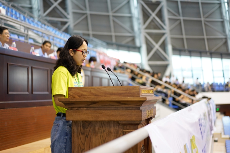蒋徐颢同学作为裁判代表宣誓,将以良好的道德风尚和专业的裁判素质确保比赛顺利进行。