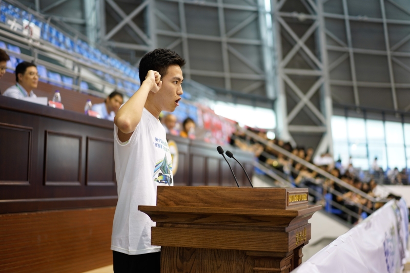 曹博同学代表参赛选手表示在比赛中会服从指挥、遵纪守规、尊重裁判与对手、赛出风格、赛出水平。
