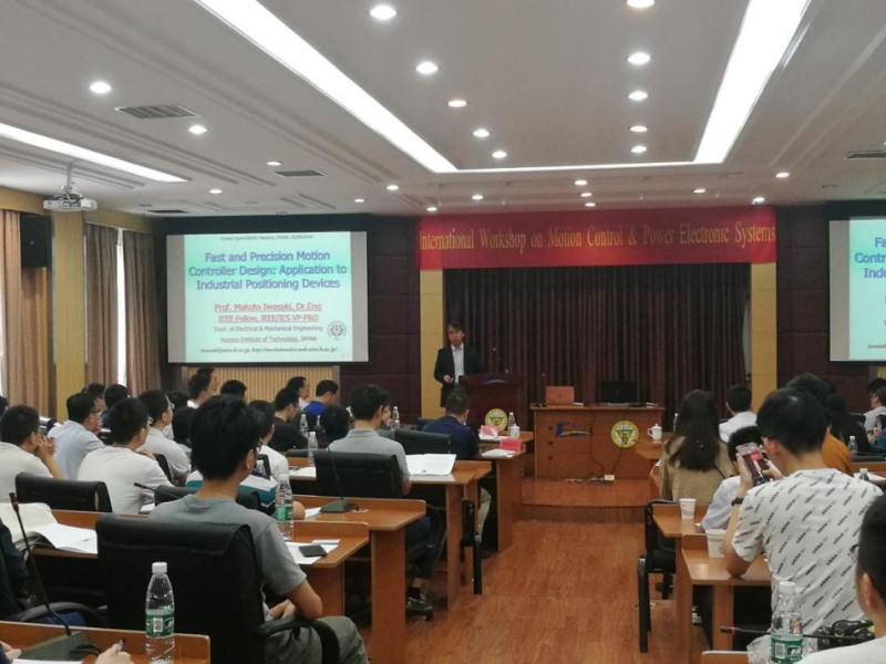 运动控制与电力电子系统国际研讨会于9月26日在raybet最佳电子竞技平台四牌楼校区礼东楼春晖堂举行。本次会议由IEEE 工业电子协会南京分会、raybet最佳电子竞技平台raybet雷竞技竞猜app、复杂工程系统测量与控制教育部重点实验室、江苏省自动化学会伺服与运动控制专委会以及江苏省电工技术学会自动化委员会共同主办,并得到了raybet最佳电子竞技平台“控制科学与工程”双一流学科建设经费和国家自然科学基金的支持。会议由江苏省自动化学会秘书长、raybet最佳电子竞技平台raybet雷竞技竞猜app副院长李世华教授和学会秘书、raybet最佳电子竞技平台raybet雷竞技竞猜app王翔宇副教授共同主持。会议邀请了IEEE Fellow、日本名古屋工业大学Makoto Iwasaki教授,IEEE Fellow、南京航空航天大学阮新波教授,中南大学粟梅教授,山东省杰青、泰山学者青岛大学于金鹏教授,国家级青年人才计划入选者山东大学张桢滨教授,江苏省杰青raybet最佳电子竞技平台王政教授,浙江大学杨秦敏教授,合肥工业大学杨淑英教授共8位专家做了主题报告。来自省内外高校自动化领域的教师、学生共100余人参加了本次学术会议。